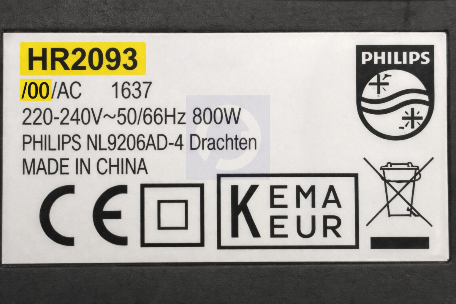 Het typenummer vind je op de onderkant van de blender.